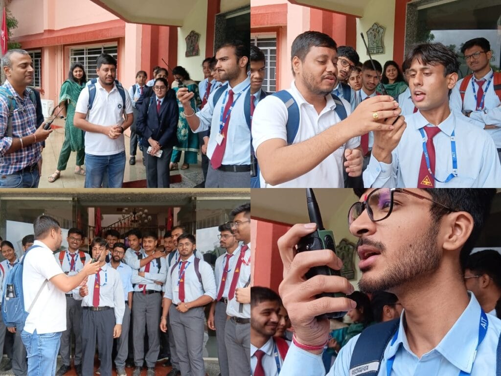 - UHF Repeater Operations: Using handheld transceivers, we demonstrated local communication through the VU2DYQ repeater. The students were absolutely fascinated to use the walkie-talkies themselves, successfully establishing QSOs with VU2MSB and VU3IZK. For many, this was their first time experiencing the clarity and reach of a repeater-assisted contact.