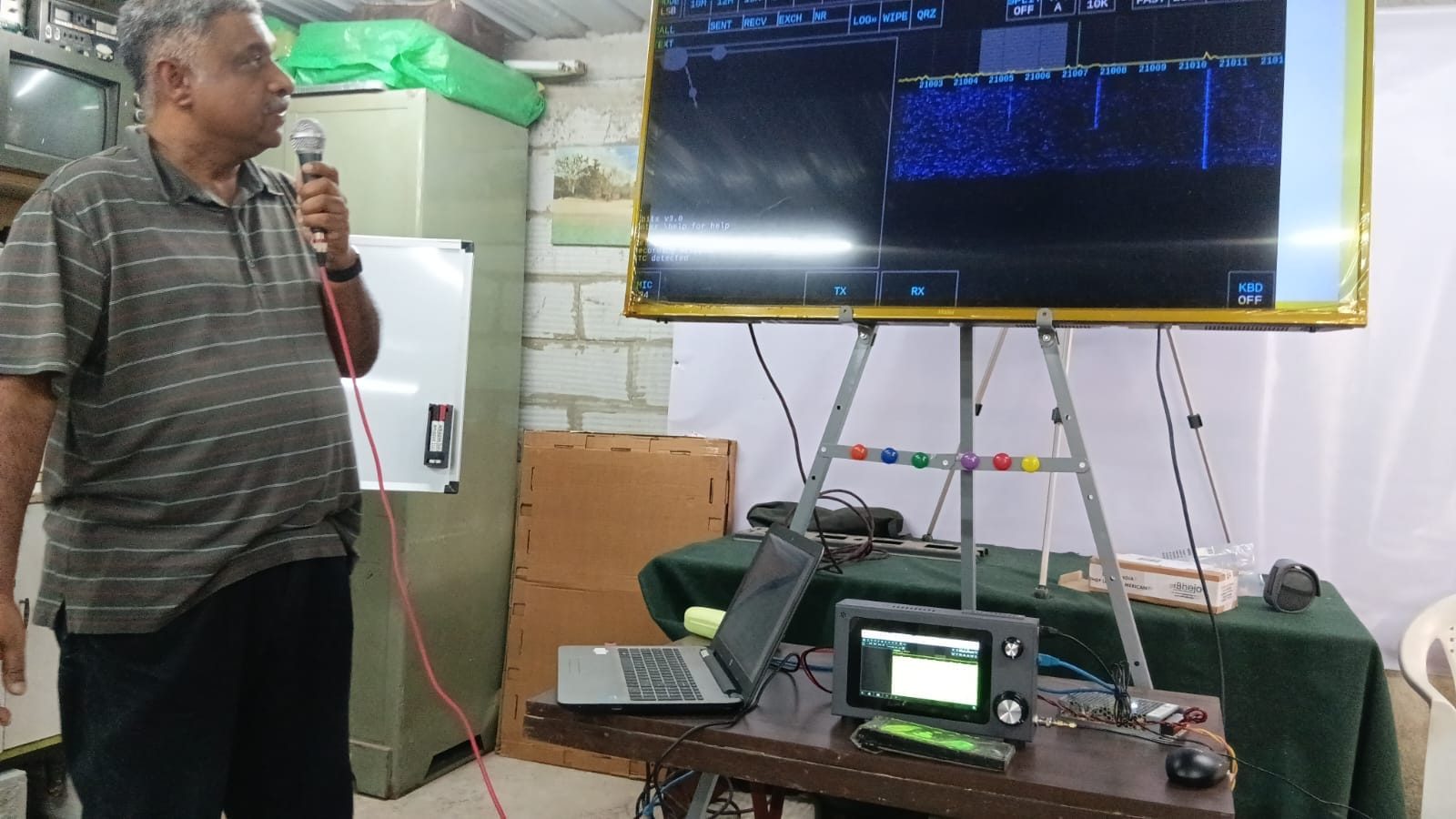 • VU3IZK OM Ranga showcased the latest sBitx all‑band 20W SDR transceiver from HF Signals, Hyderabad. He explained its features and conducted a live demo.